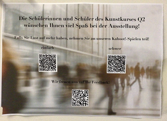 Dafür verwendeten die SuS Akrylfarben und Spachtel, bzw. grobe Pinsel, um einen bestimmten Grad der Abstraktion zu erreichen und neue Ausdrucksweisen auszuprobieren. Nach der Fertigstellung der Gemälde konzipierten, führten durch und reflektierten die SuS eine Kunstausstellung sowie begleitende Aktionen in der Schule.