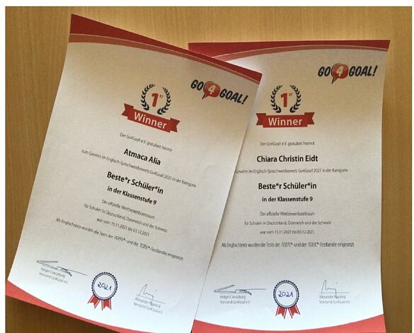 Es gab insgesamt 10 Schüler aus unserer Schule, die den Test absolviert haben und zwei Schülerinnen aus dem E-Kurs in der 9. Klasse sind beide erster Platz in dem ganzen 9. Jahrgang aus Deutschland, Schweiz und Österreich und haben so die volle Punktzahl von 900 erreicht.