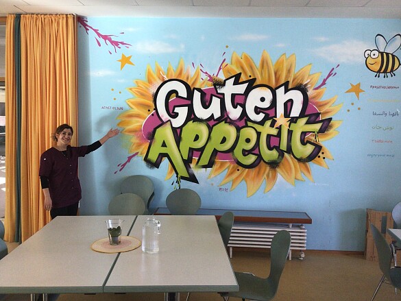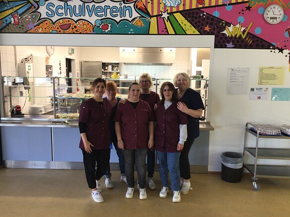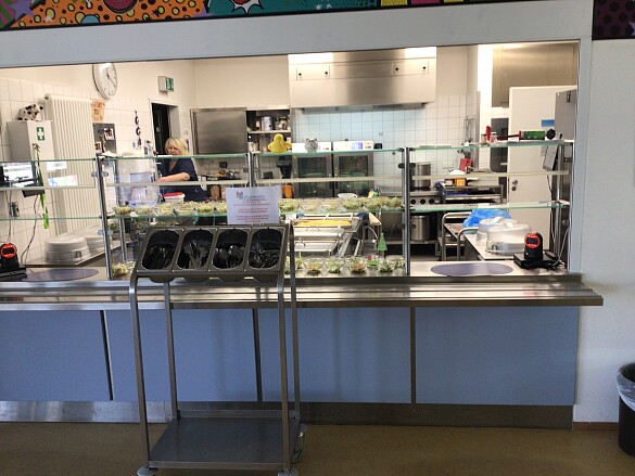 Unser engagiertes und freundliches Mensateam kocht weitgehend selbst und ist, was den Einsatz von regionalen und Bioprodukten betrifft, schon weit vor dem „Aktionsplan 2025", der im Land Bremen regelt, wieviel Bio in der Gemeinschaftsverpflegung verwendet werden soll. Wir orientieren uns an den Vorgaben gesunder, ausgewogener und nachhaltiger Ernährung und bieten nur einmal die Woche Fleisch an. Es gibt täglich eine reichhaltige und leckere Salatbar, an der die Kinder ihren Salat selbst zusammenstellen können.